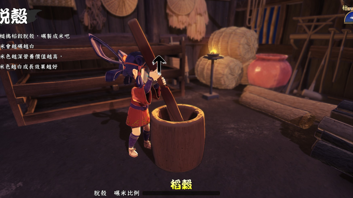 根據田裡的實際情況可以加入其他材料,例如除蟲時可以加入大蒜,投入的材料會影響肥料的配置等級。等到秋天就可以收割了,產量也會根據春夏的表現所決定,隨後就是晾曬、打殼和脫殼等一系列操作。不得不說沒有打米機效率真的很低,連剝殼都要用原始方法。最後留下明年的種子,剩下的就是一年的勞動成果,不過遊戲並沒有給休息的時間,玩家馬上就要再次開始培育種子,春天一到就要手動翻地,開始第二年的種田生活。