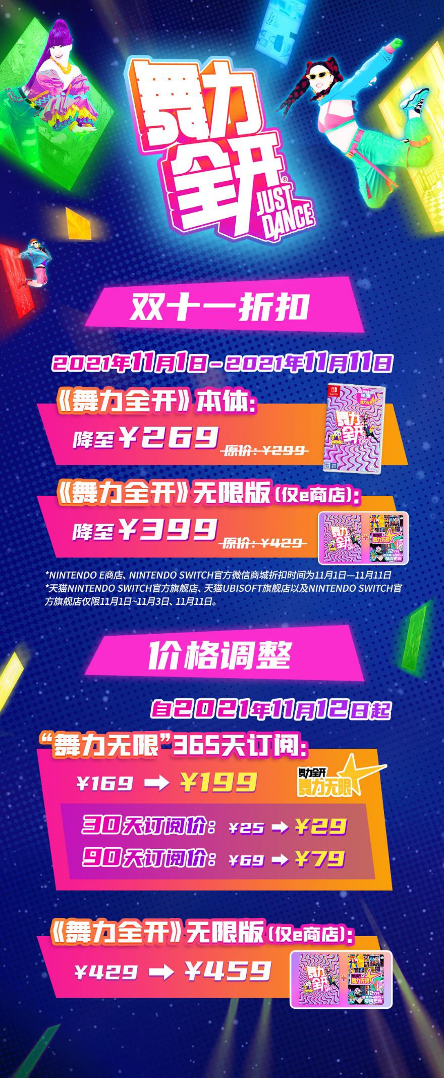 目前《舞力全開》標準版售價299元(雙十一折扣價269元),現在購買的玩家,還可以獲得一個月會員。