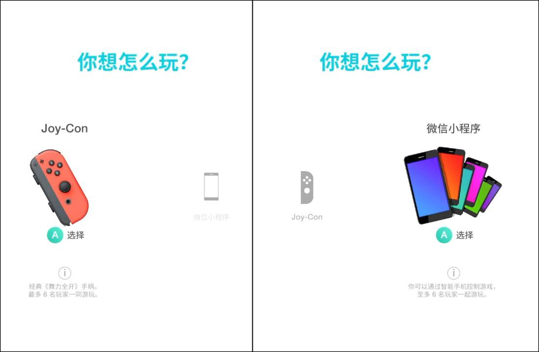 特別是國行版的《舞力全開》,非常適合全家老小一起玩,操作起來也很方便。你看,從國行NS進入遊戲界面,可以看到有兩種不同的操控方式: