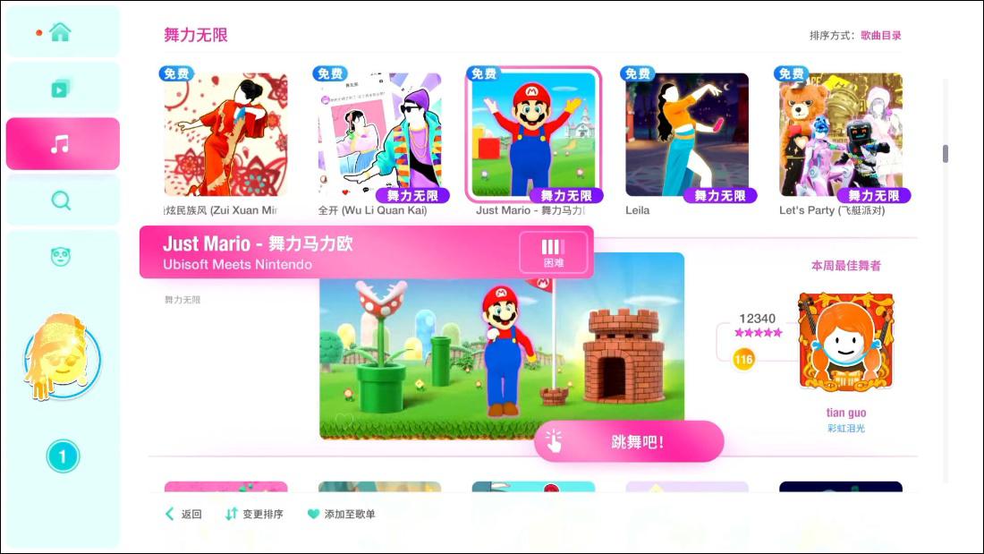 目前國行的本地曲庫包含了 48 首中外流行或經典歌曲,通過「舞力無限」 的訂閱服務,可以額外遊玩超過 300 首好歌。