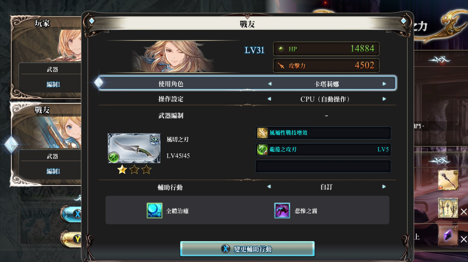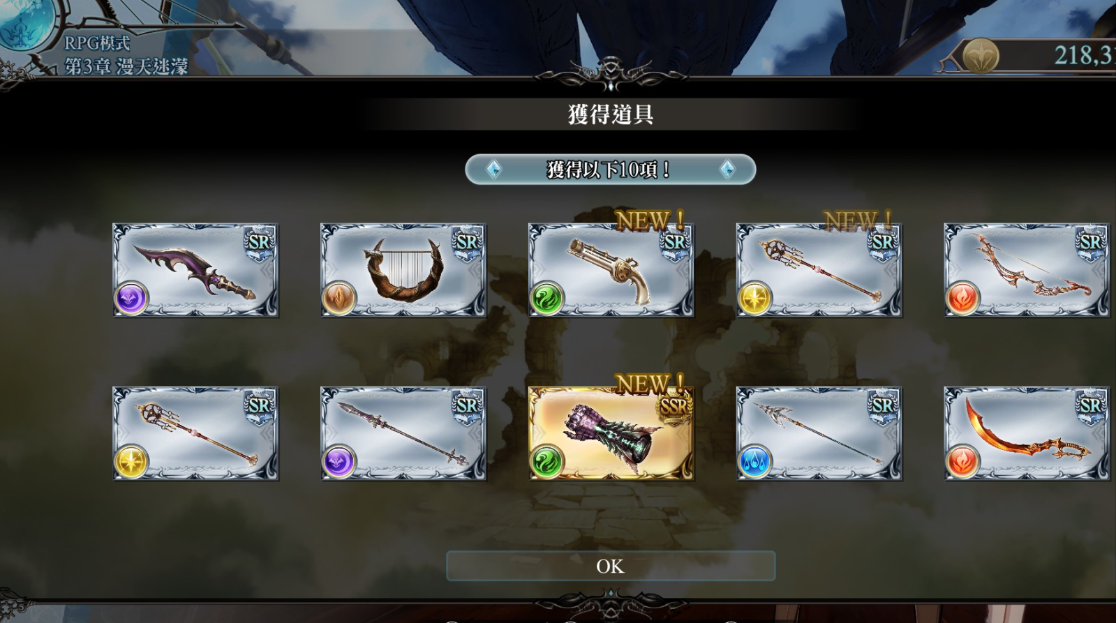除了戰斗以外,游戲在RPG方面也是儘可能還原了原作中的系統。完成主線和支線後可以有更多隊友加盟,解鎖更多可以用於戰斗中的符文,每次通關會根據通關要求得到對應的獎勵。不過最直觀的當屬這個10連了,達成要求獲得武器券後可以去抽幾個10連,因為作為《碧藍幻想》的衍生作品,武器盤系統自然是少不了的。游戲中共有6種屬性,每個屬性的武器盤需要10把武器,原作中需要爆肝的玩點在本作中也同樣體現了出來。於是在抽卡、強化、抽卡、強化之間,玩家彷彿又找回了昔日熟悉的感覺。