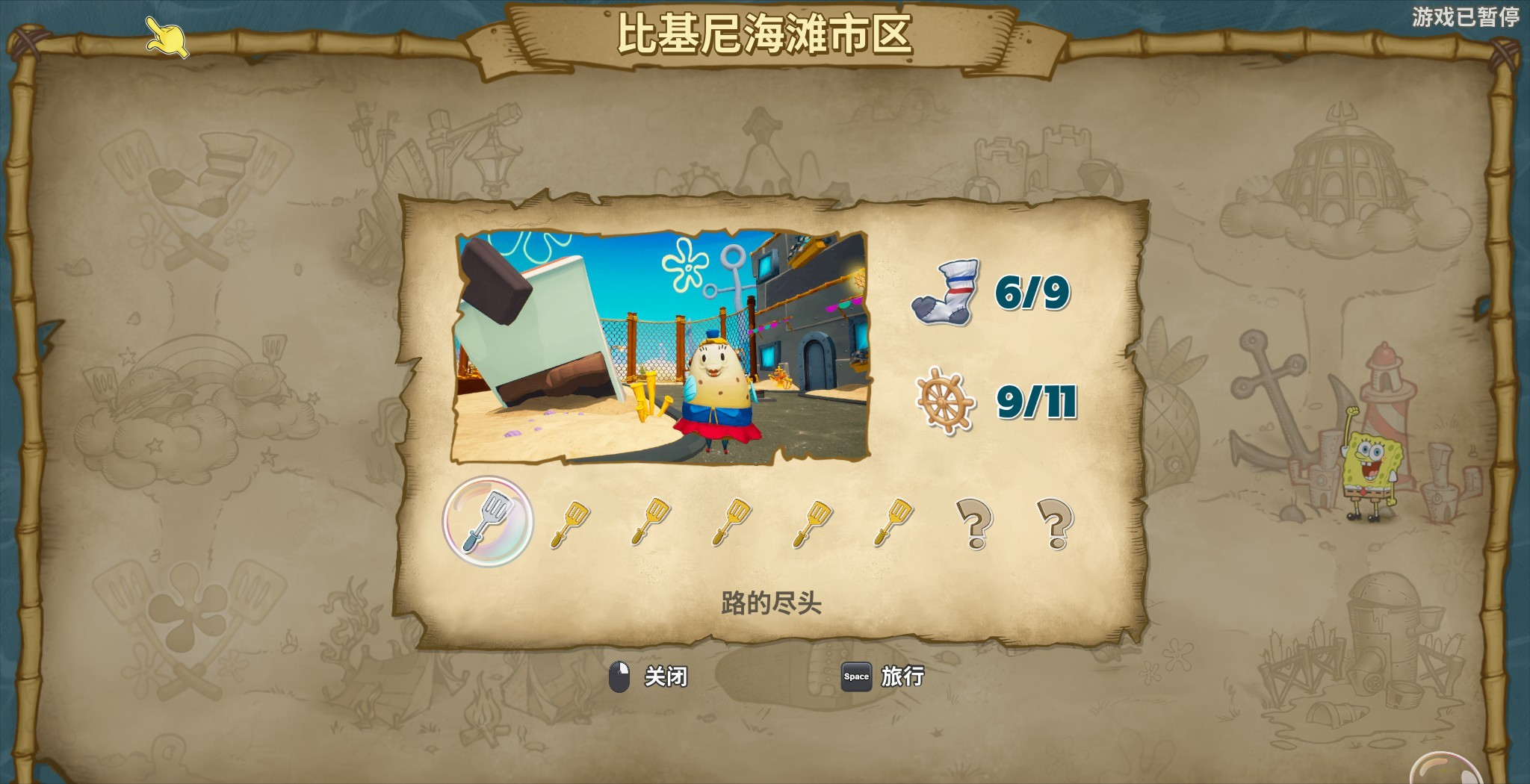 本作中玩家將扮演我們的主角海綿寶寶還有派大星等角色,在不同的場景中開始冒險。游戲玩法類似於Gears for Breakfast在2017年推出的時光之帽,玩家需要收集一定數量的金鐵鏟以便解鎖新場景,鐵鏟可通過場景上收集的亮晶晶和襪子來找蟹老闆跟胖大星兌換,只是前者的數量要求還是比較多的,闖關時儘可能地多收集亮晶晶的東西。