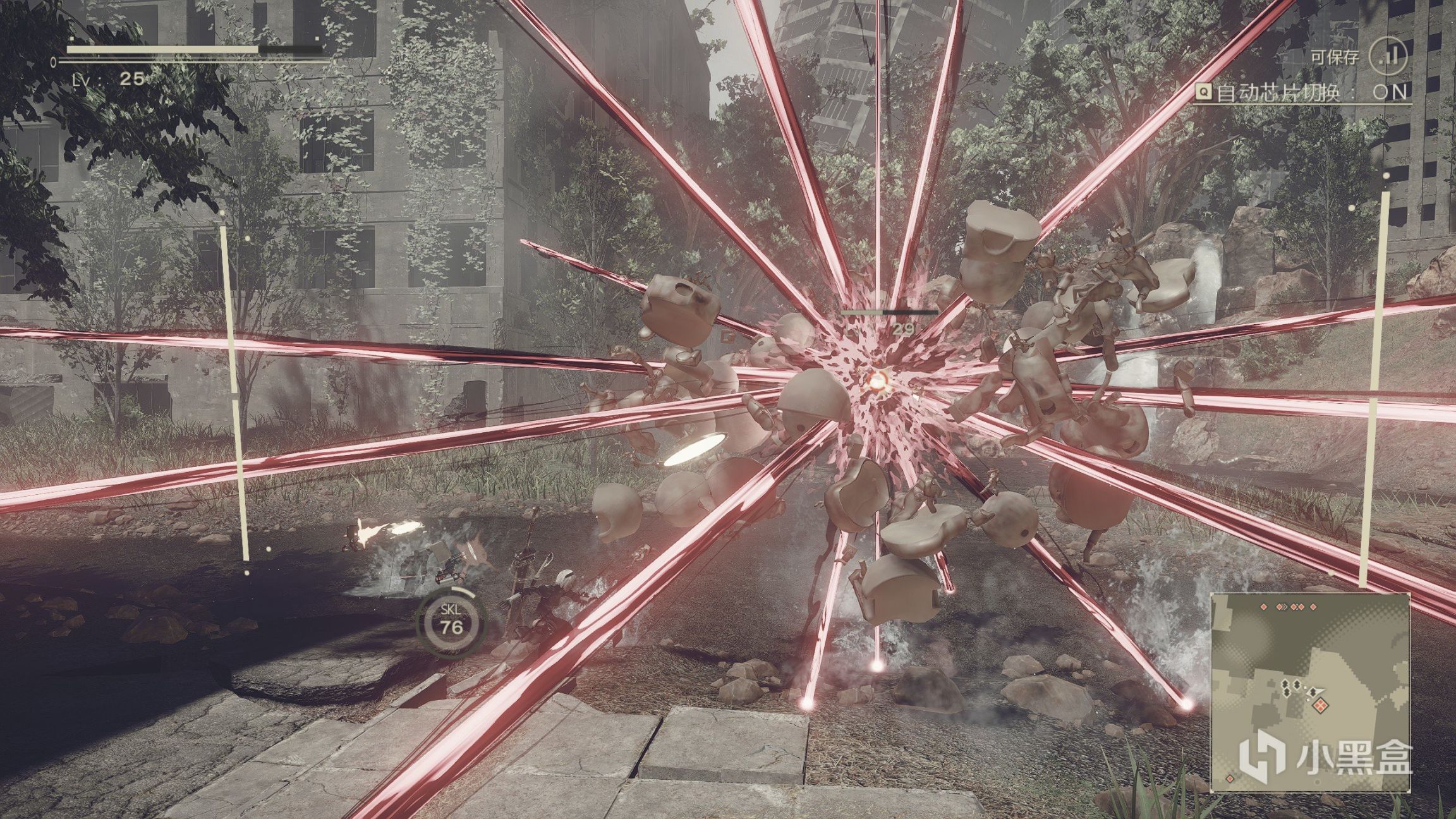 尼爾的戰鬥設計還是挺有特色的,連招很簡單,隨便點點都能打出很漂亮華麗的動作,武器什麼的也很好看很有美感。而且遊戲有多種難度可供選擇,適合各種人群,簡單模式下玩家還可以開啟自動閃避、攻擊等功能,只想過劇情的朋友可以選擇簡單模式(我是覺得遊戲難度有點大,一直開著自動閃避)。