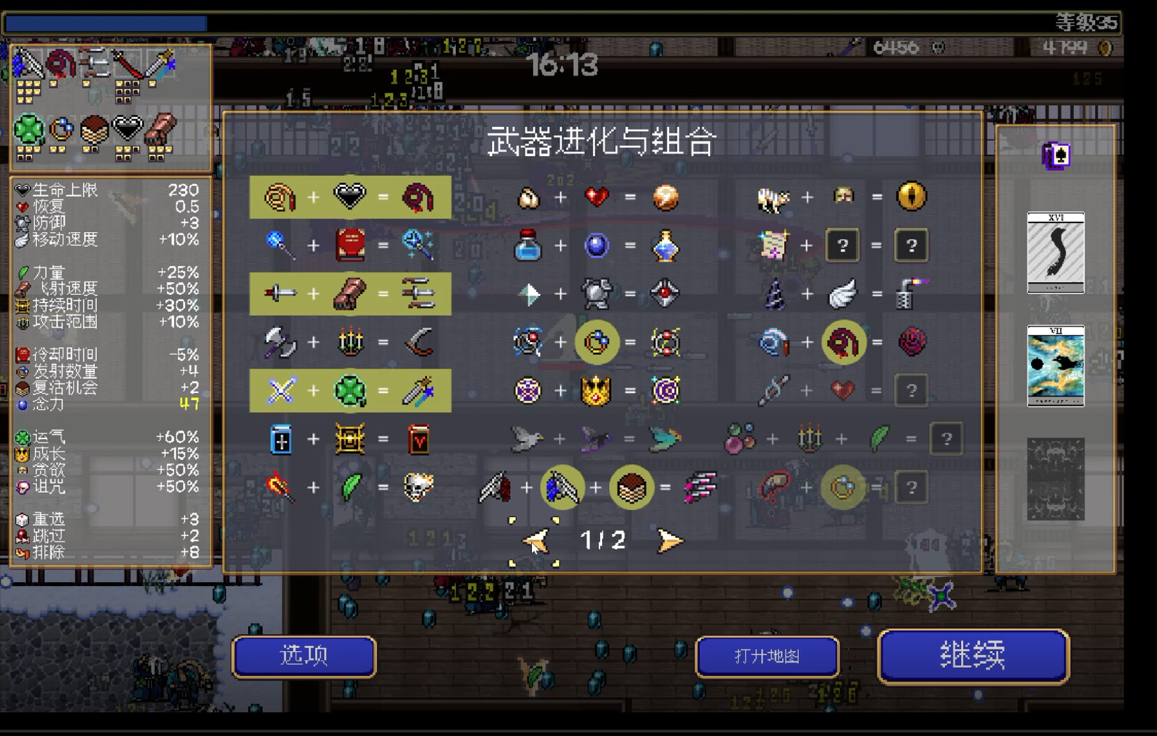 只是這種改變,我不知道是否適合《吸血鬼倖存者》這種偏向無腦玩法的定位。因為這款遊戲的本質樂趣,就是不用太動腦子,操縱人物四處走,跟據武器的攻擊特性,擊殺掉四處湧來的怪物就好。地圖本質上就是個背景板而已。