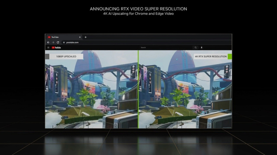 官方稱:「RTX視頻超級解析度功能使用人工智慧,通過消除塊狀壓縮偽影和提高視頻解析度來改善在瀏覽器中觀看的任何視頻的質量。這提高了視頻的清晰度和明晰度,讓人們在高解析度顯示器上以其原始解析度觀看在線內容。」