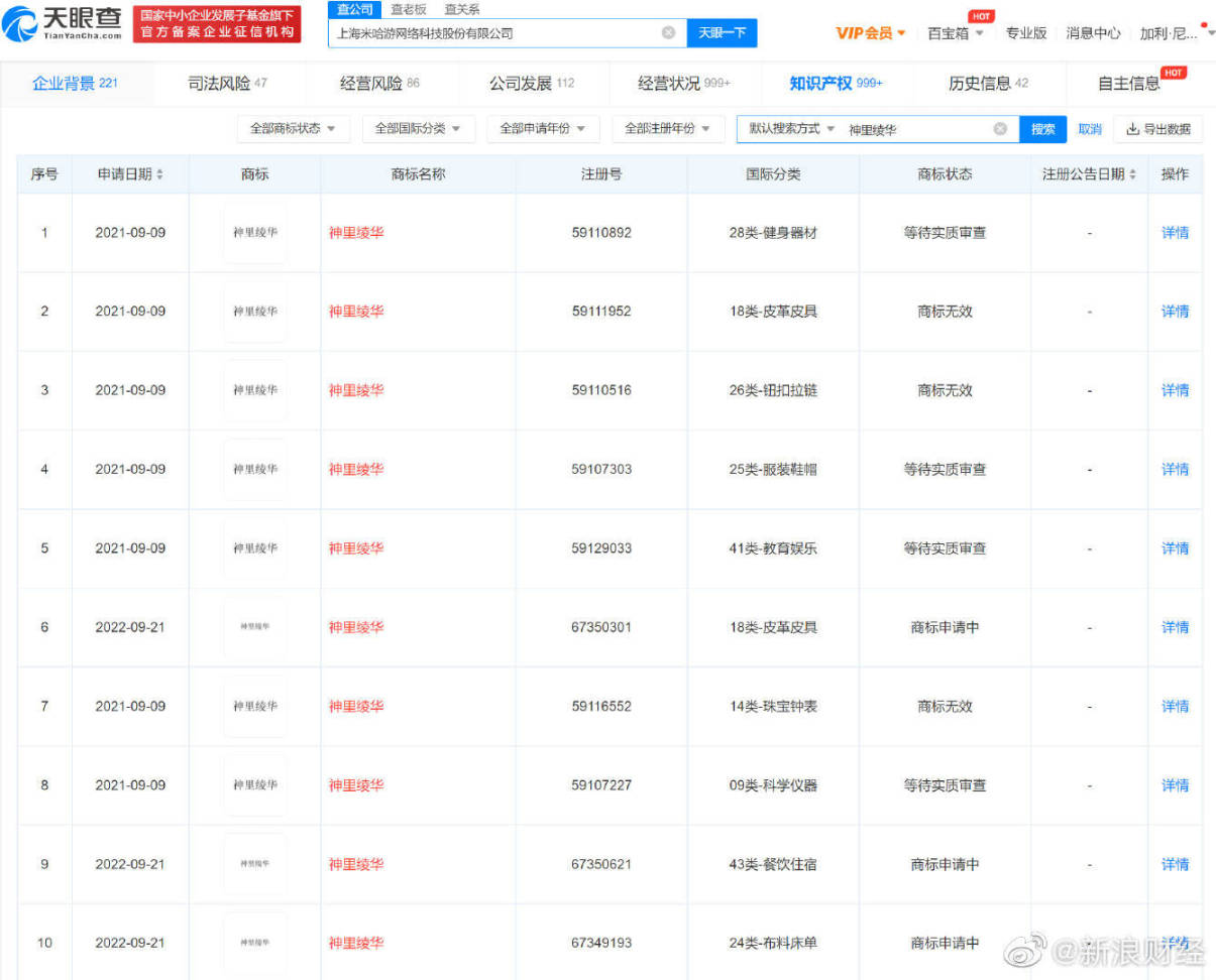 米哈游申請海量《原神》相關商標;包括多項原神角色商標