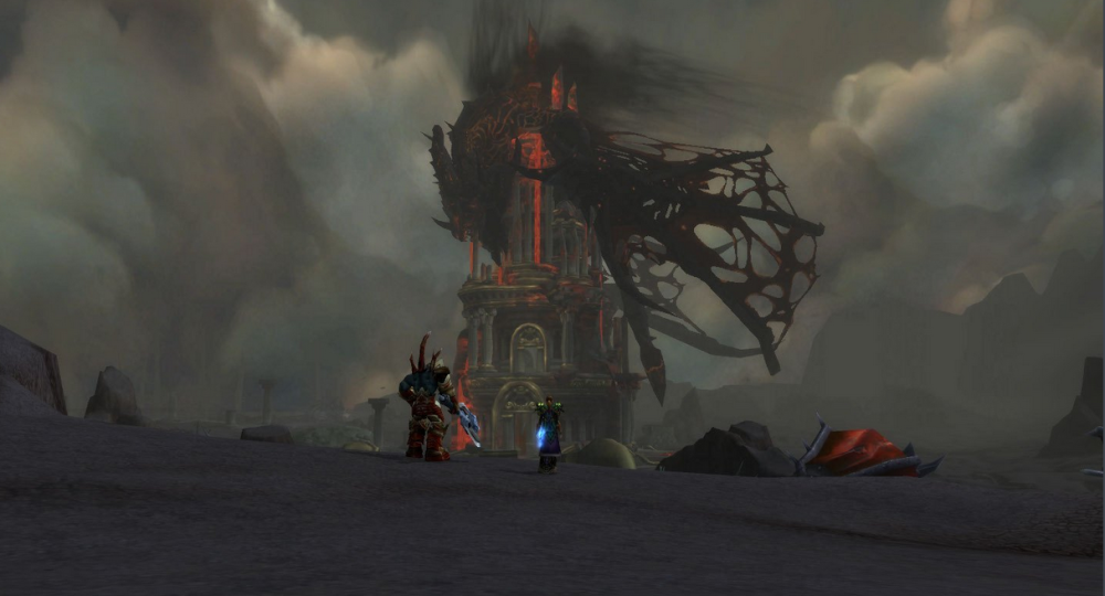 首先是龍眠神殿,它位於諾森德大陸龍骨荒野的中心地帶,大災變版本還發展出了巨龍之魂團本。龍眠神殿規模宏大,最震撼的是神殿頂峰上巨大的死亡之翼屍體,被釘在上面,從胃和傷口不斷噴出岩漿,這一點得到有效還原。
