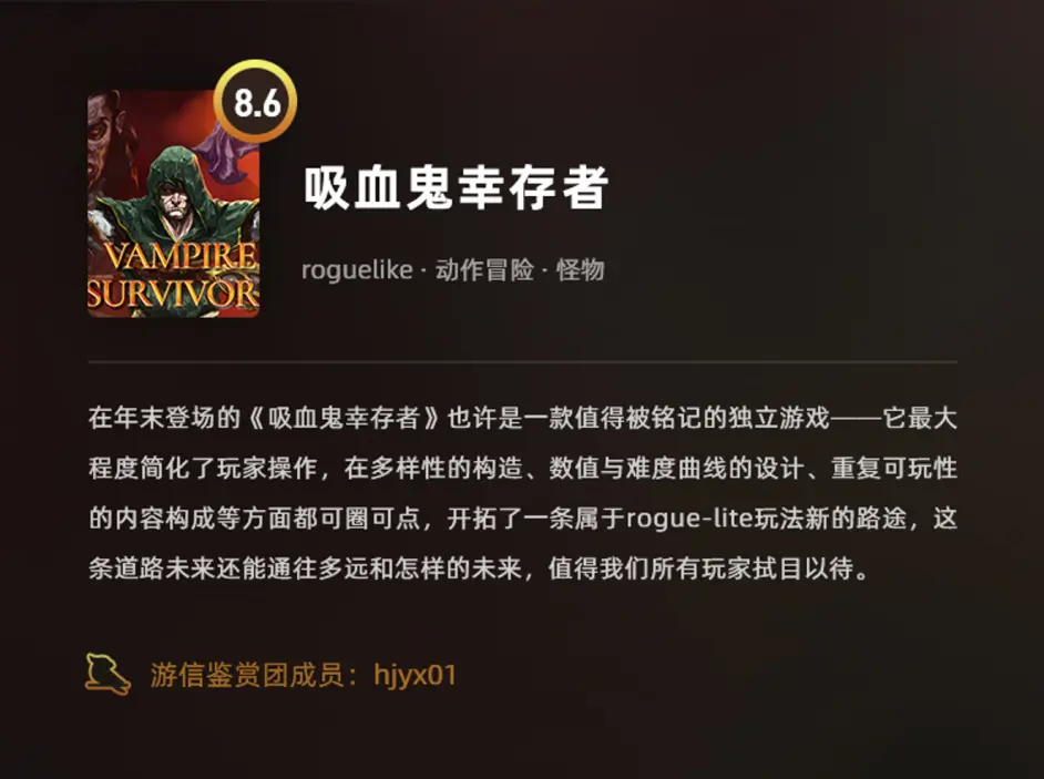 好評如潮的《吸血鬼倖存者》