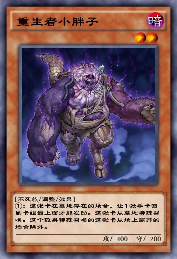 再之後同調召喚上線,重生者小胖子(殭屍帶菌者)攜成長的花朵等不死族卡牌捲土重來,搭配當時非常熱門的法老化身組成了相當強勢的不死同調均構築,穩定的資源展開搭配同調回收資源的效果有著遠超其他種族的展開能力,很多喜歡泛用強力同調怪獸的玩家們都會攜帶這張卡進行外掛,這一體系也成為了同調時代的一大代表。