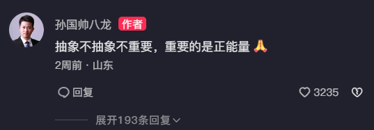 和短視頻平台上一直流行的「正道的光」尬劇一樣,通過抽象尬劇走正能量路線,是孫國帥最早的運營策略。