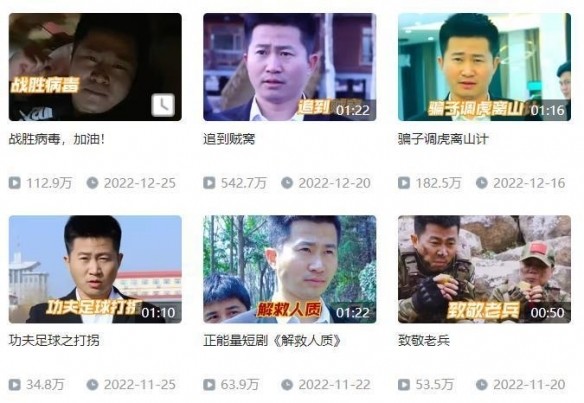 實際上,當你瀏覽孫國帥的早期的視頻,你會發現除了那些帶著正能量劇情的小短劇之外,更多的還是他抒發關於致敬英雄,又或者是自己參加活動的內容,雖然看著有些小尷尬,但也挺真情實感的。
