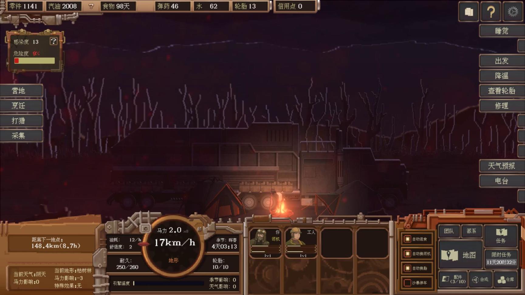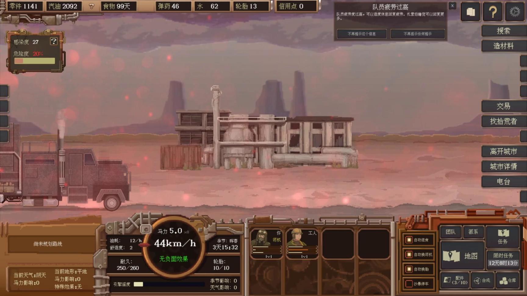 油耗是大大滴減少,初始物資給的挺多,普通難度下單人物資活幾十天沒有問題。