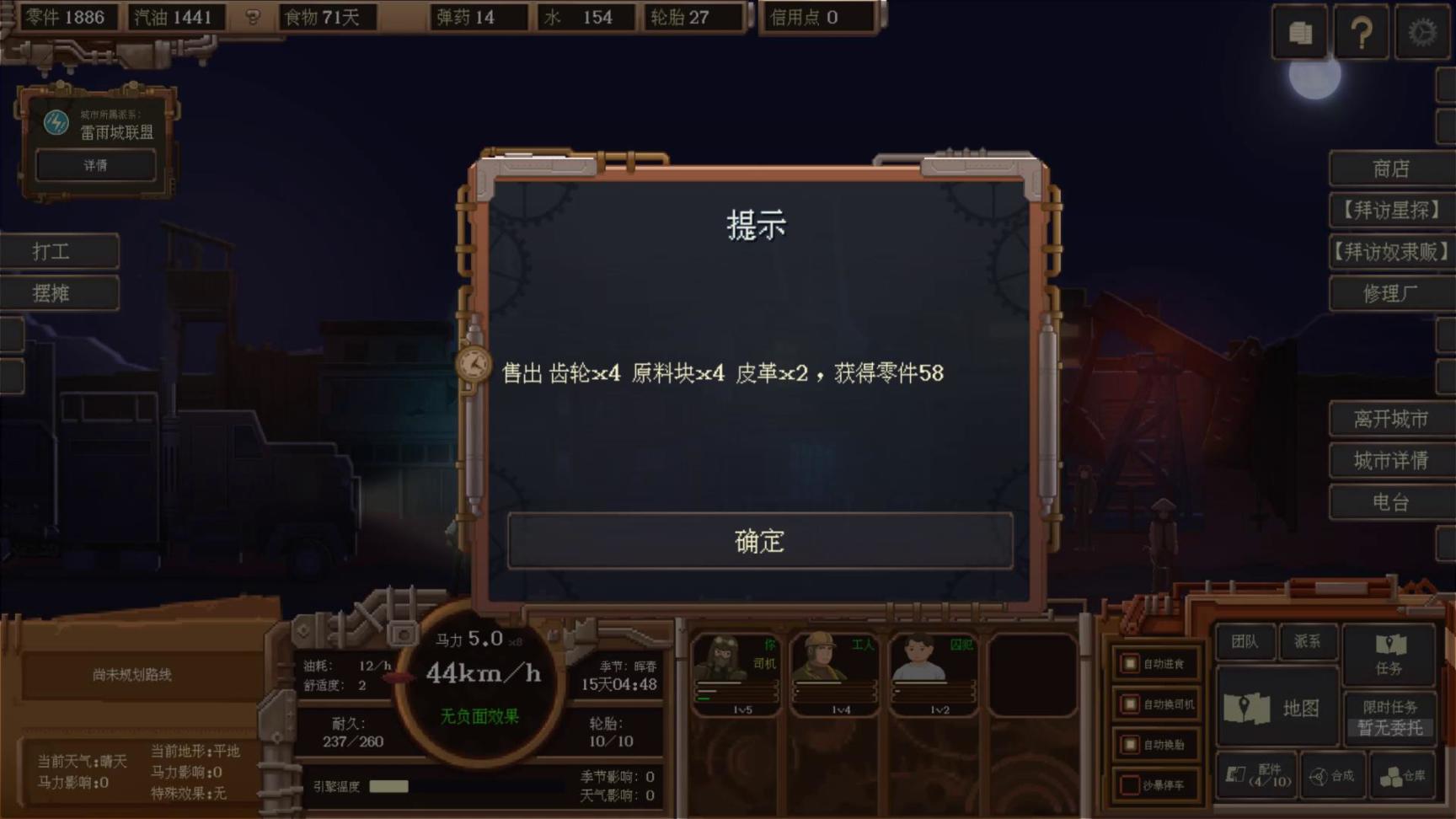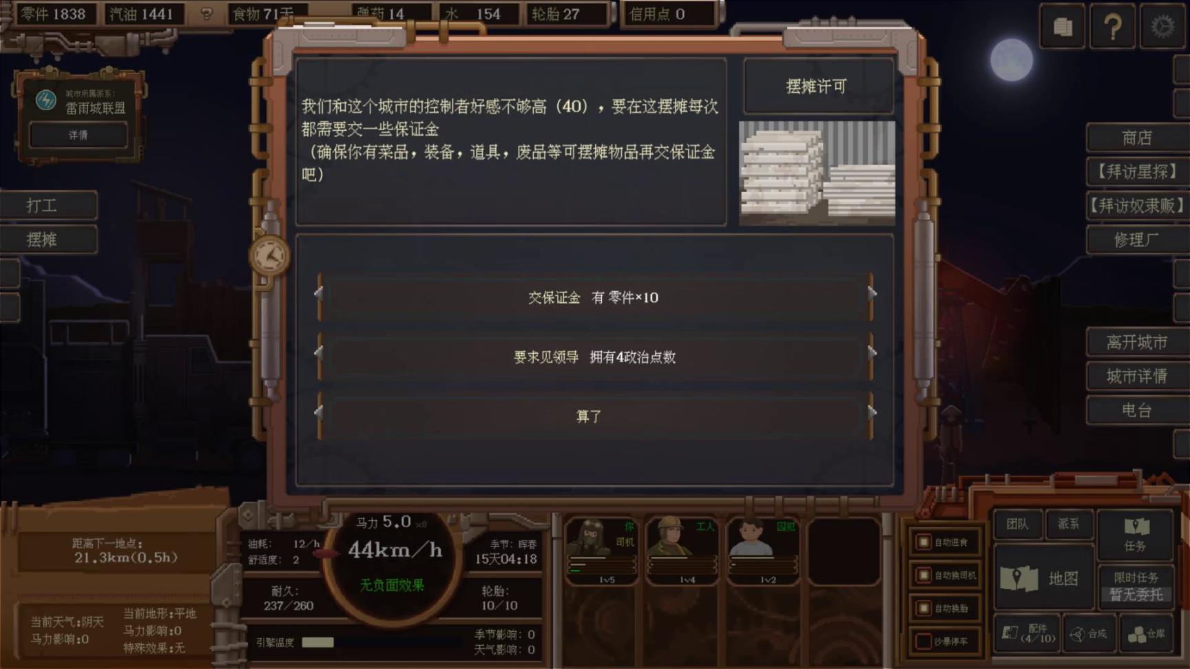 身為打工人,首要目標還是搞錢。城市的搞錢方式除了之前的打工,還多了個擺攤。在不熟的城市擺攤你甚至會被收保護費,可以,這很廢土。
