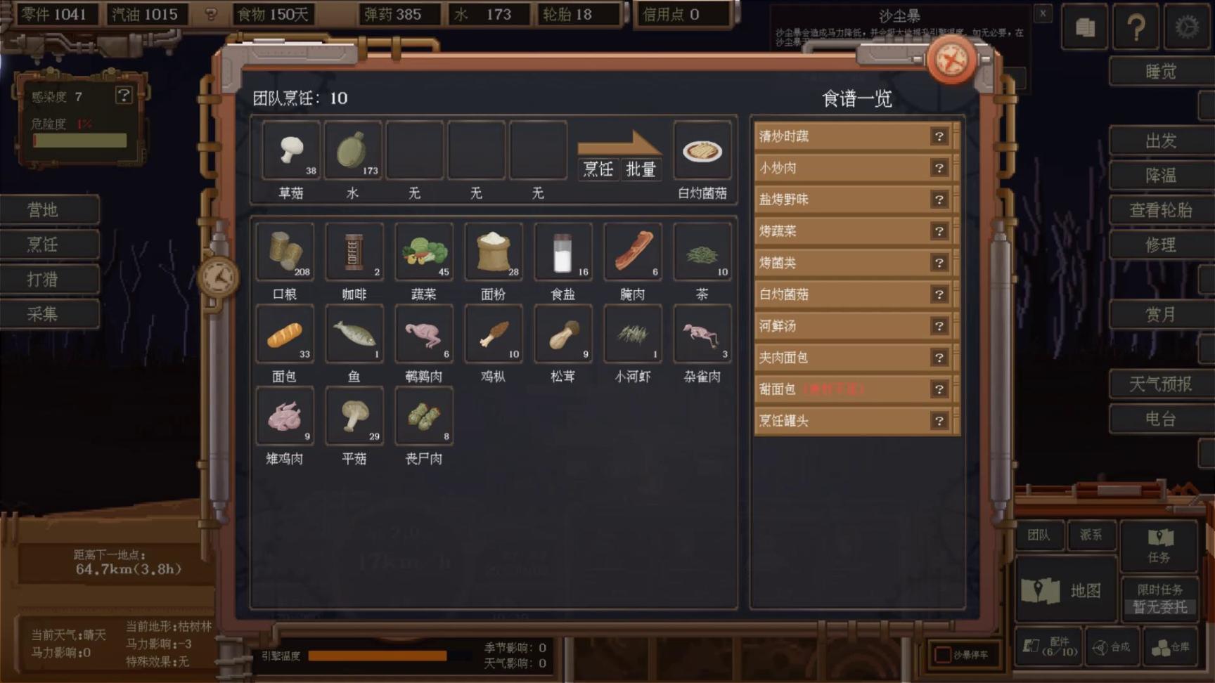 最顯而易見的是游戲裡新增了很多種食物,新版本中共有175種食品。河裡長的,地上生的,調味料,甚至是喪屍肉…