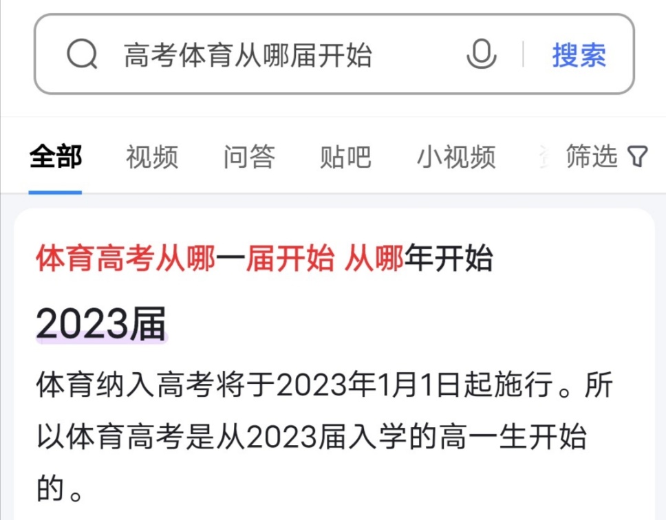 預計2023年1月1日開始。體育高考是從2023屆入學的高一生開始的考試時間預計2023年1月1日開始,項目分為身體素質項目、輔助技術項目、專項技術項目三部分,高考體育專業考試成績滿分為300分。
