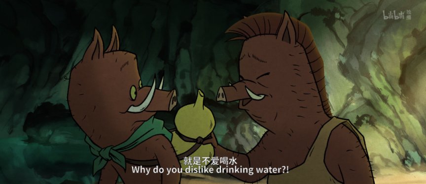 比如,小豬妖在大王身邊工作很久之後,回到家,會被自己的媽媽問東問西,最後再被媽媽來一句「補刀」:你的水壺怎麼是空的?要記得喝水呀,直接破防。