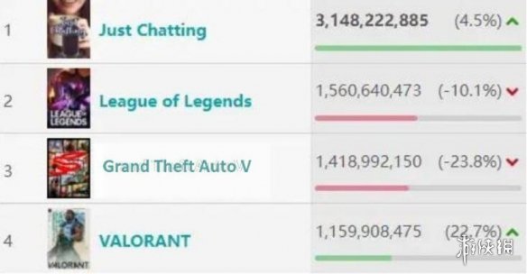 而在2022年的twitch直播熱度排行榜中,《無畏契約》也僅次於《LOL》和《給他愛5》,擊敗了《CS:GO》,位列第四。足見這款遊戲在廣大玩家群體中的地位。