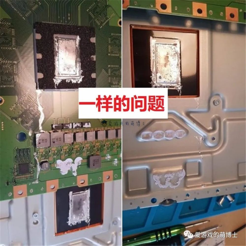至於原理的話,也很簡單。博士之前在文章《為了讓遊戲主機PS5有效的散熱,索尼的開發人員使出了渾身解數》,介紹了開發人員在處理器的背面使用了液態金屬,這個東西取代了以往的取代了原本的潤滑脂,降溫更有效率。不過,當PS5長時間豎立放置時,產生的熱能就有可能使液態金屬流出!而且這個情形不僅限於一種型號,目前推出的PS5存在這種問題,包括數字版以及光碟版。