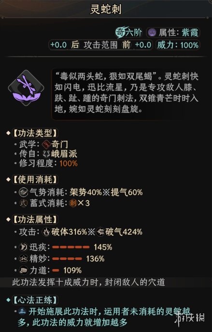同樣是四六開的架勢提氣,在原威力100%時,靈蛇刺破體為316,迅疾為145,那麼玩家就會想,1000%威力的神龍搗,破體豈不是變成3160,迅疾為1450?