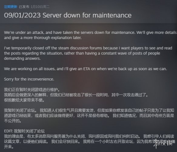 官方已經聘請了非常有才華的網路安全專家來進行協助,按照計劃,伺服器將於美國東部時間周三下午5點(北京時間周四早上6點左右)重新開放。官方表示自己正在盡一切努力,感謝所有玩家的耐心和理解。