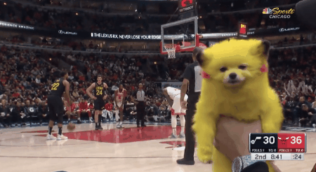 因COS皮卡丘而走紅的小狗再次登上電視,出現在本周NBA芝加哥公牛隊VS猶他爵士隊的比賽中,給到的鏡頭相當足。不過,因寵物染色問題,其主人現在面臨當地法院的處罰。