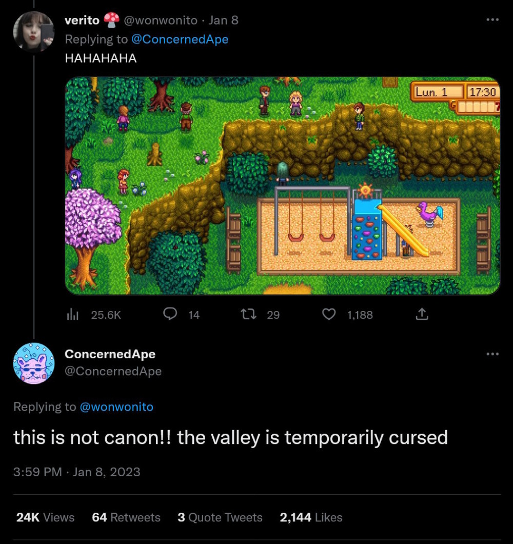 跟游戲的傳達的和諧氛圍一樣,《星露穀物語》玩家整體比較友好和耐心,在問題曝出後並沒有出現謾罵和指責的情況。