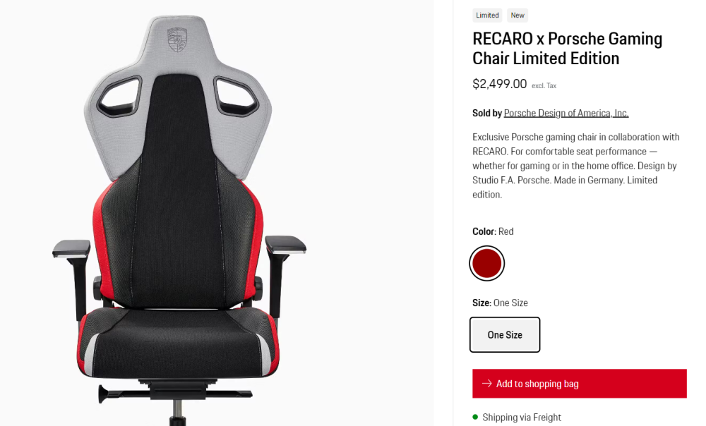 保時捷出電競椅了,他們聯合大廠RECARO推出了RECARO x Porsche電競椅,售價2499美元。
