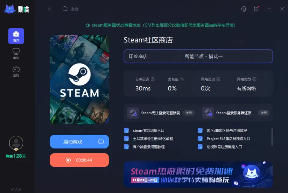 遇到了不要慌,這說明了你需要一個更好的網路環境,可以打開暴喵,搜索游戲和平台就可以使用了,