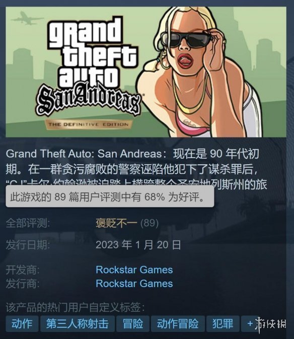 《GTA 聖安地列斯》評價為「褒貶不一」,好評率68%