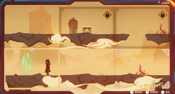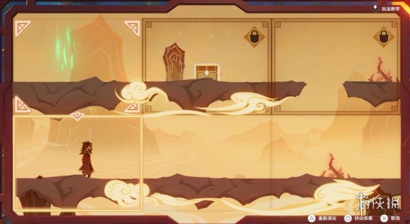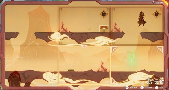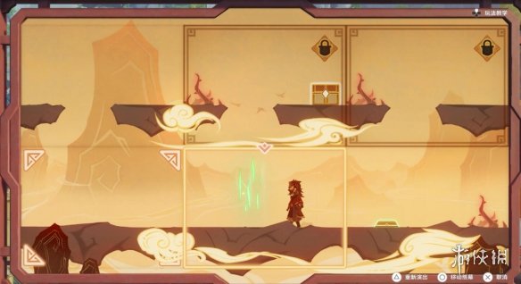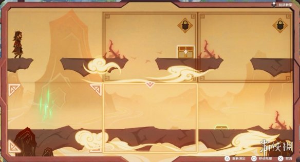 第三步,在角色走入右上蹭風場時,交換右上和左下,完成挑戰。