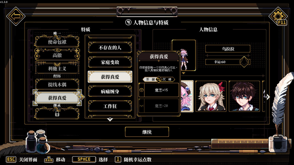 玩家將從一系列預制原型中選擇自己的角色,影響玩家在游戲過程中做出的選擇,角色不存在硬性的成長體系,一切的屬性系統為敘事服務,其優秀的擲骰子機制實際已超越了桌面版本。