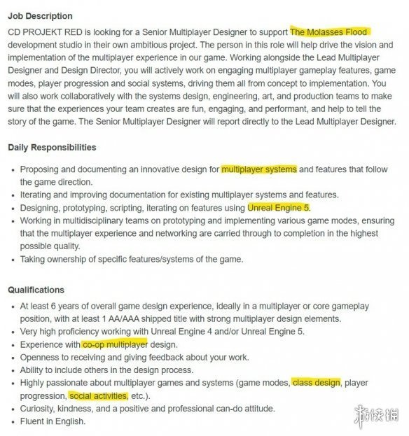 根據最新的職位招聘信息,下一款《巫師》新作包含多人合作和PVE,職位招聘信息中還清晰地表明了這款遊戲使用虛幻5引擎開發。
