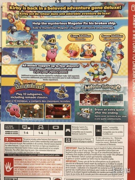泄露的遊戲封底顯示除了《星之卡比Wii豪華版》新增的卡比復制能力之外,還有兩個新的模式:一個是包含10款新老迷你遊戲的模式還有一個「魔法洛亞後傳」模式。