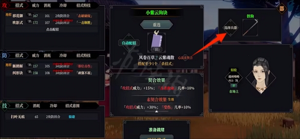 2、還可以在這里對自己的心法和招式來進行調整,選擇最適合的招式。