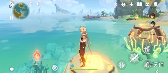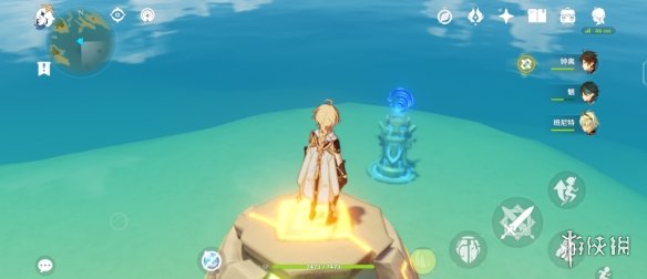 1.來到此處,用岩主墊腳,到元素方碑旁再用芭芭拉重擊即可。
