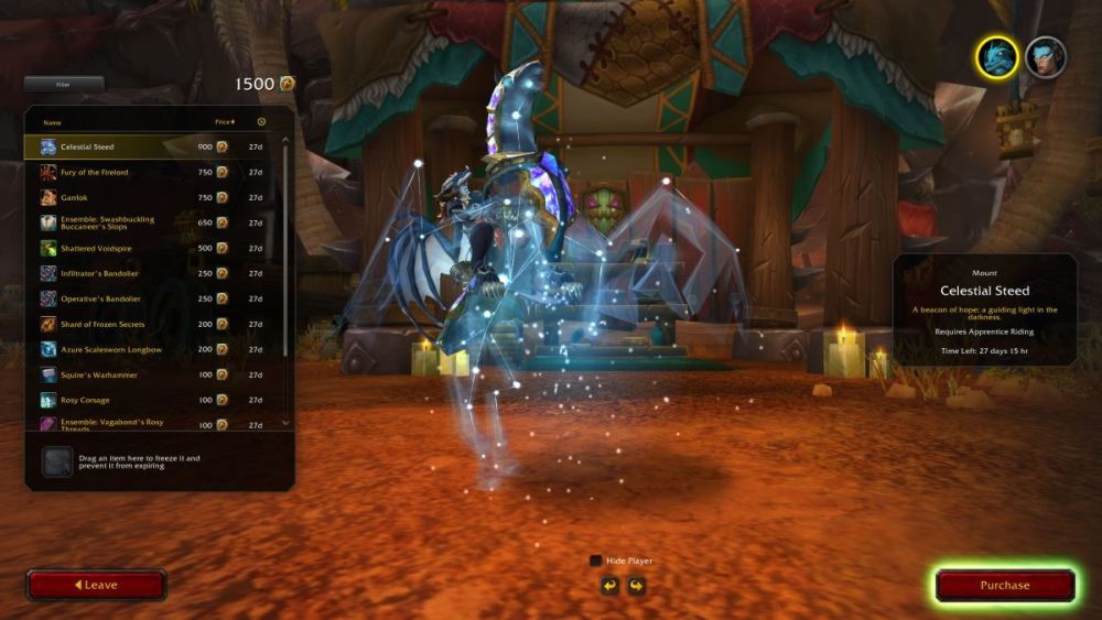 貿易站是魔獸正式服更新10.0.5之後的主打玩法之一,玩家可以通過完成每月任務來賺取貨幣,用於貿易站購買裝飾品、寵物與坐騎等等,其中一些在過去是要用真金白銀購買的。貿易站每月會刷新,引入新的物品與活動。