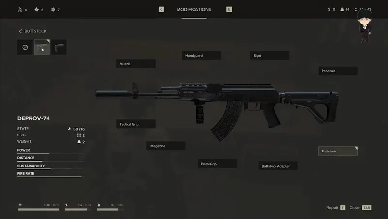 例如想要安裝握把,需要有對應護手握把槽才行,想要安裝槍托需要對應槍托連接器才行,這在玩家DIY自己武器上做了進一步的細節化,而製作這方面零部件想必也需要玩家大量搜刮道具進行分解後才能滿足於要求
