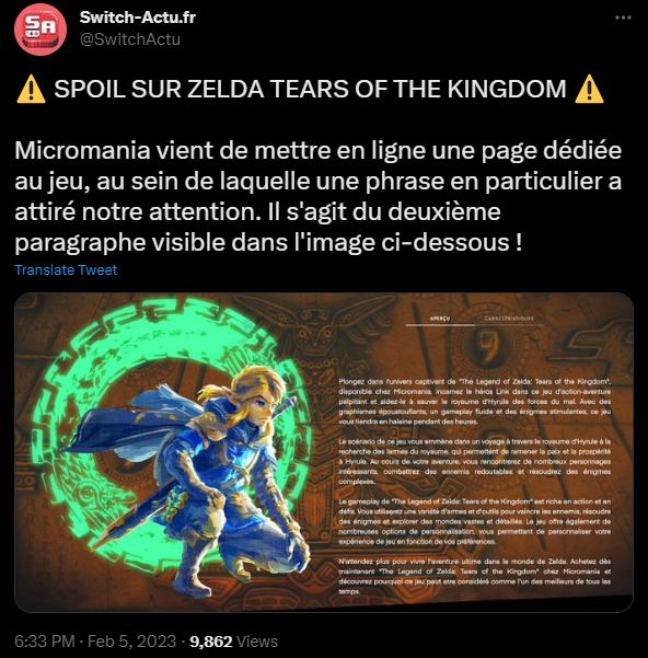 《塞爾達傳說:曠野之息》續作《塞爾達傳說:王國之淚》5月12日登陸Switch平台發售,近日來自法國零售商泄露了游戲的部分情報,雖然聽起來更像是廣告,一起來了解下。