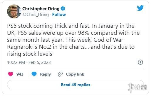 我們都知道,最近PS5解決了供應鏈和庫存短缺的問題,因為該主機的銷量也得到了大幅度的增長。GamesIndustry的Christopher Dring今日發布推文,表示根據Gfk提供的數據,PS5今年1月在英國地區的銷量相比去年同期暴漲了98%。