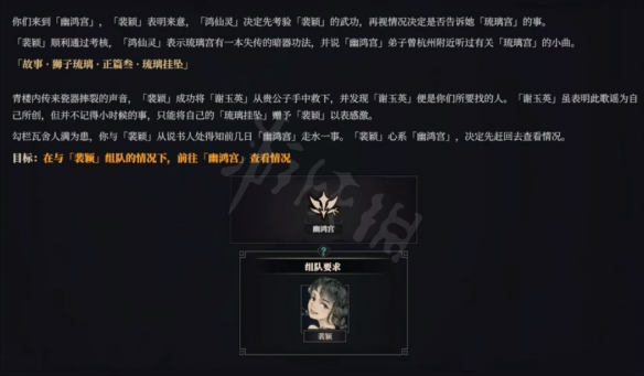 7.【等候時間】趕赴幽鴻宮完成任務 600貫、煙鴻無影步、荔枝譜、龍洞秘寶(129,370),需鴻仙靈組隊,可獲得獅子琉璃 名氣+2