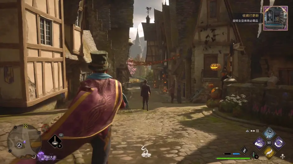 在霍格沃茨城堡之外,除了知名景點霍格莫德村,還有一大片開放世界,和多個新的小村莊。在霍格莫德,你自然能感受到最地道的選魔杖體驗,以及魔法商業區的種種驚喜。各種商店麻雀雖小,但生動呈現了豐富的細節,個別商鋪甚至還有隱藏機關。魔法世界的生活氣息撲面而來,行走其中,彷彿能和第一次來的哈利感同身受。相比之下,開放世界的其他村莊則稍顯同質化,整體風格上並沒有太大的差異化。