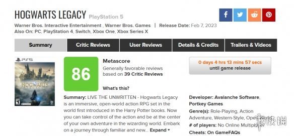 《霍格沃茨之遺》全球媒體評分現已解禁,截止至本稿發出時, M站均分86(一共39家媒體參與,PS5版本),知名媒體這邊IGN 9分、VGC 80分(100分制)。