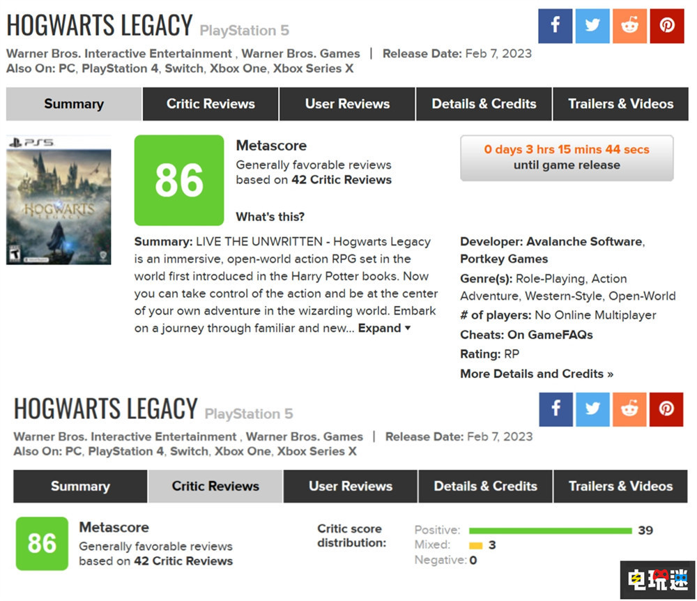 隨著《霍格沃茨之遺》豪華版即將解鎖,本作的全球媒體評分也已解禁。截至目前(2月6日),Metacritic上的媒體平均分達到86分,目前一共收錄了42家評分,其中39家給出了好評,3家給出了中評,目前沒有差評。多數評價中《霍格沃茨之遺》都是一款在開放世界中放了足夠多哈利波特粉絲們喜歡的魔法內容的遊戲,而缺點則是敘事互動上的缺陷。