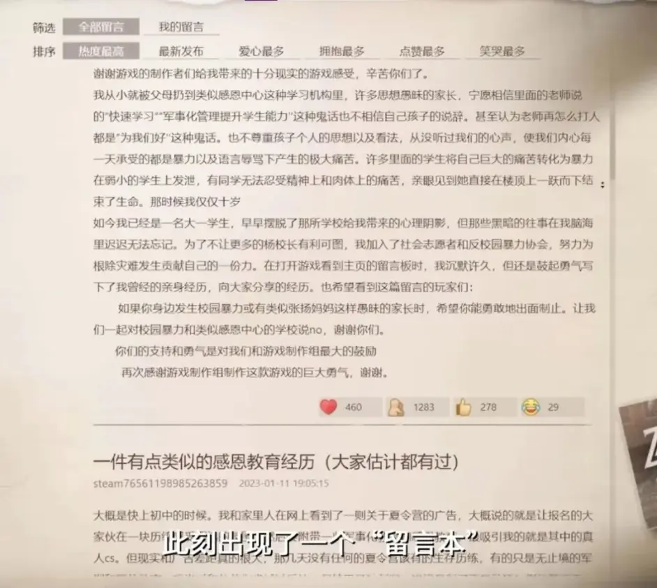 最後,給留言本點個贊!(留言本部分靈感可能來源於尼爾機械紀元,張揚與校長同學們斡旋可能參考了隱形守護者)
