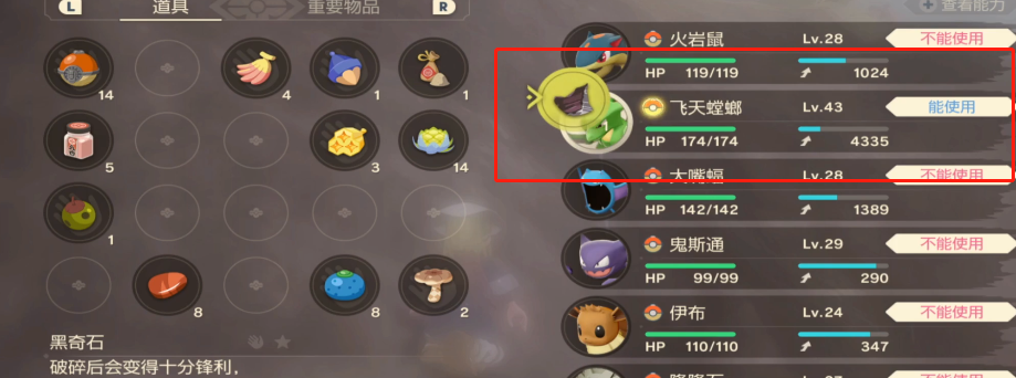 首頁 寶可夢傳說:阿爾宙斯 問答 寶可夢阿爾宙斯飛天螳螂怎麼進化成劈斧螳螂? 2022-07-01 一、飛天螳螂需要黑奇石才能進化成劈斧螳螂,如下圖所示,打倒隆隆岩可以得到黑奇石(有幾率)。二、讓飛天螳螂使用黑奇石。三、成功進化為劈斧螳螂。