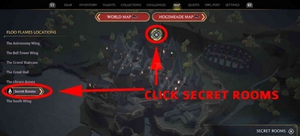 傳送方法:打開霍格沃茨地圖,在左側單擊“密室”,然後單擊要快速前往的密室。或者,單擊霍格沃茨地圖屏幕北部的太陽圖標。