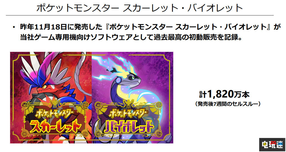軟體方面,任天堂2022年三季度游戲銷量為1億7211萬份,同比降低4%。主要新作中,《寶可夢 朱/紫》銷量1820萬份,《斯普拉遁3》銷量940萬份,《任天堂Switch運動》銷量790萬份,其中《寶可夢 朱/紫》成功達成任天堂首發游戲銷量最高紀錄。