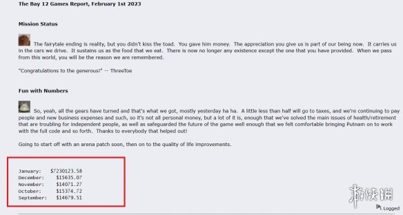 《矮人要塞》 開發商Bay 12 Games 在官方論壇上表示,在2023年1月份本作的收入超過700萬美元(總共7230123美元),本作的製作人 Tarn Adams 和 Zach Adams 兄弟倆非常開心,因為這筆錢能給Zach Adams治病了,也能讓《矮人要塞》 的開發繼續下去,他們感謝了給予《矮人要塞》支持的玩家們。