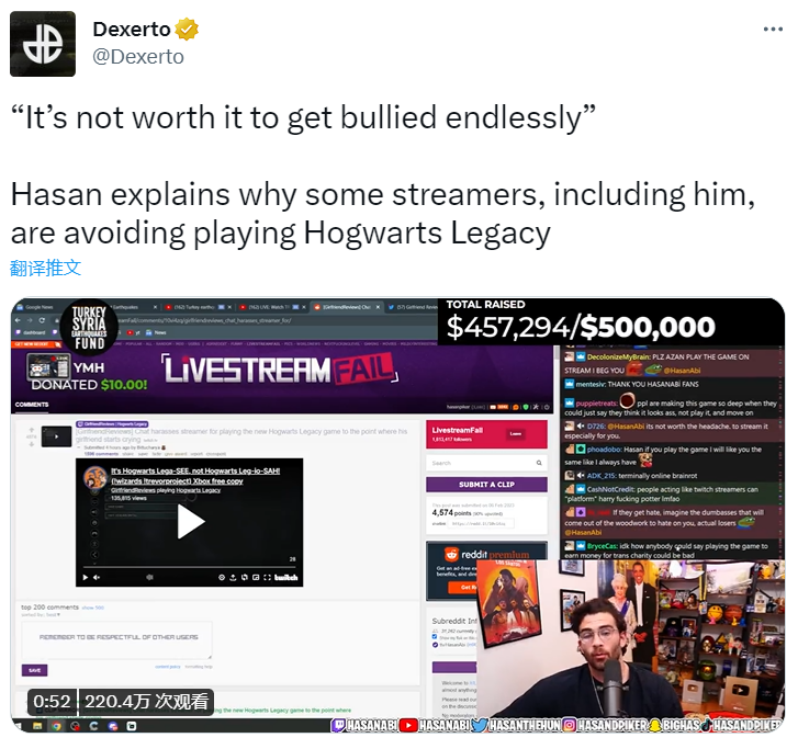 《霍格沃茨之遺》被主播抵制: