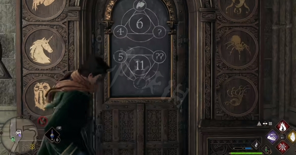 霍格沃茨場景內有大量的動物圖案門,解謎方法很簡單,通過中間數字減去周圍的數字或者動物數字,得到的數字就是答案,動物數字從左往右對應0-9。